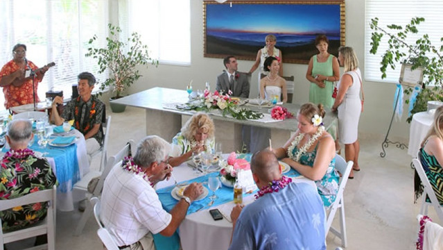 "The Estate" Hawaii wedding package provides a private setting for your wedding ceremony and celebration. The party is set in a luxury oceanview estate. The atmosphere of the estate wedding will flow over to the party celebration, creating an all-inclusive location from beginning to end. Hosting the wedding ceremony, photography, and reception party, all in one location will allow for stress-free execution, and an extravagant experience. Hosting your reception at "The Estate" is guaranteed to wow all of your guests!